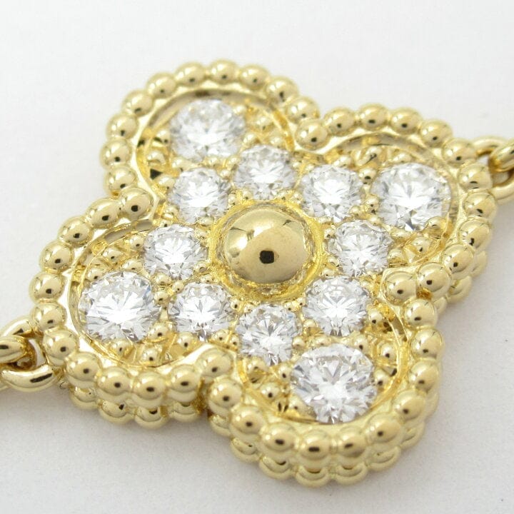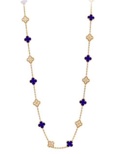 This rare limited edition Van Cleef & Arpels Paris Vendôme necklace was released to celebrate VCA’s 50th anniversary and is no longer available. Featuring 20 Alhambra motifs—10 with blue Sèvres porcelain and 10 with round brilliant-cut diamonds—this long vintage necklace is a highly collectible masterpiece and a stunning addition to any luxury jewelry collection.